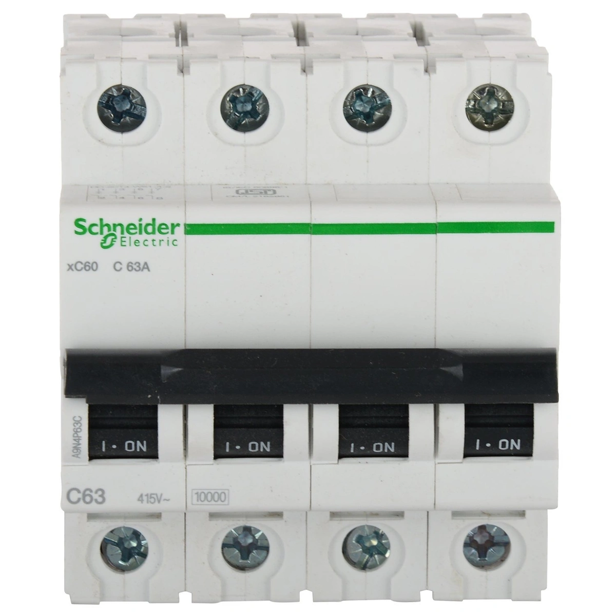 Schneider Electric Acti 9 63-A, ampere 4-Pole C Curve MCB, White, Standard (ACT 9 'C' CURVE)